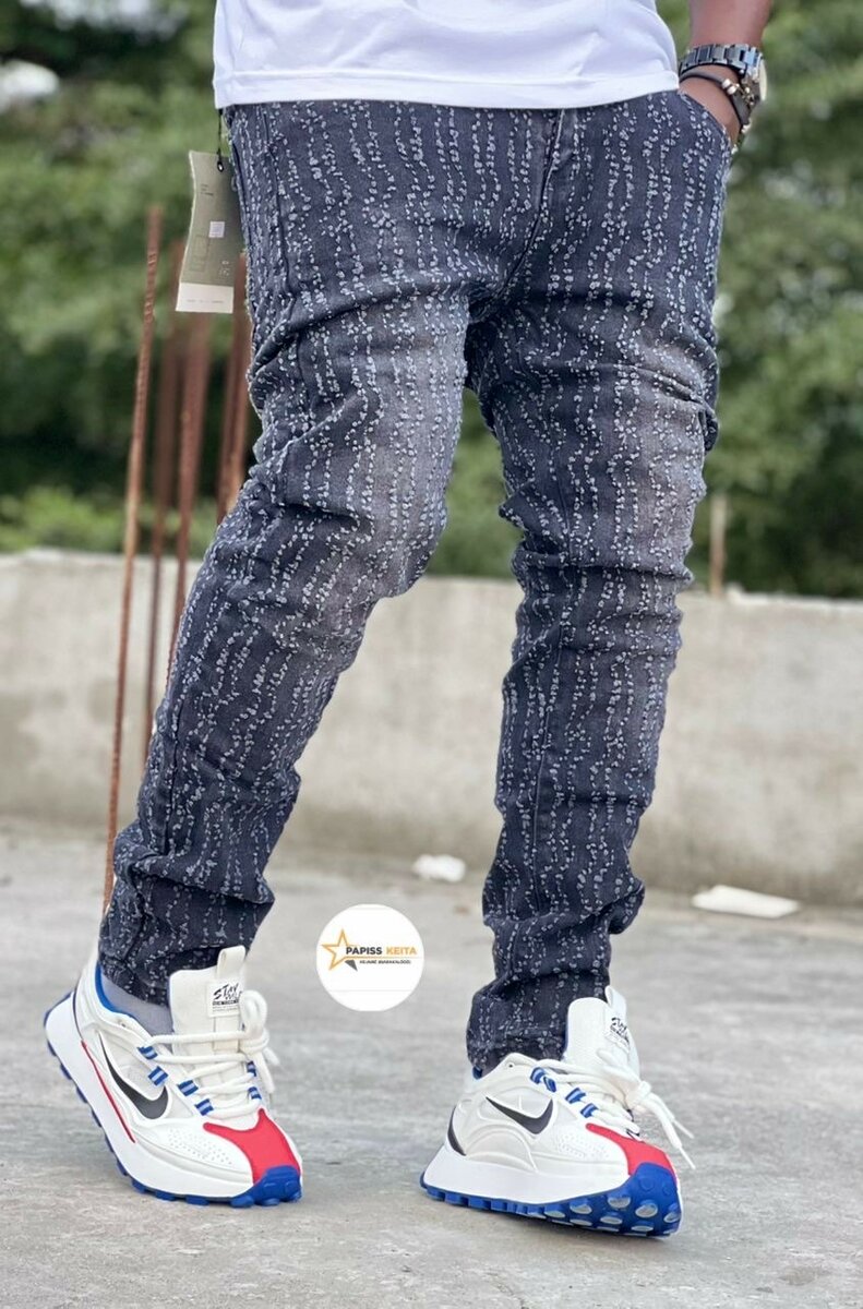 Jean slim pour homme avec design unique, parfait pour un look tendance et décontracté. Confortable et stylé, idéal pour toute occasion, que ce soit pour une sortie entre amis ou un rendez-vous. S'accorde facilement avec des sneakers ou des bottes pour un style urbain.