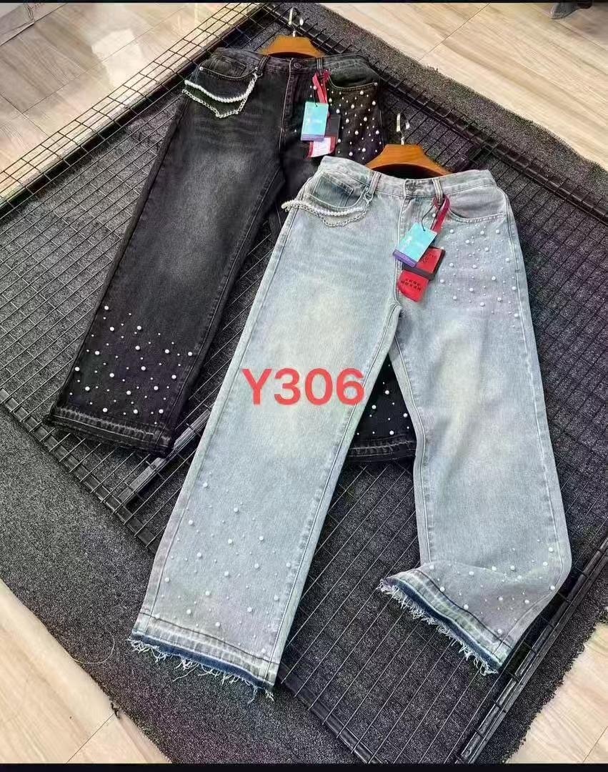 Ces jeans en denim ornés de perles ajoutent une touche d'élégance à votre garde-robe. Disponibles en noir et bleu clair, leur coupe moderne et les détails perles en font un choix parfait pour un look chic et décontracté. Idéal pour toutes les occasions.