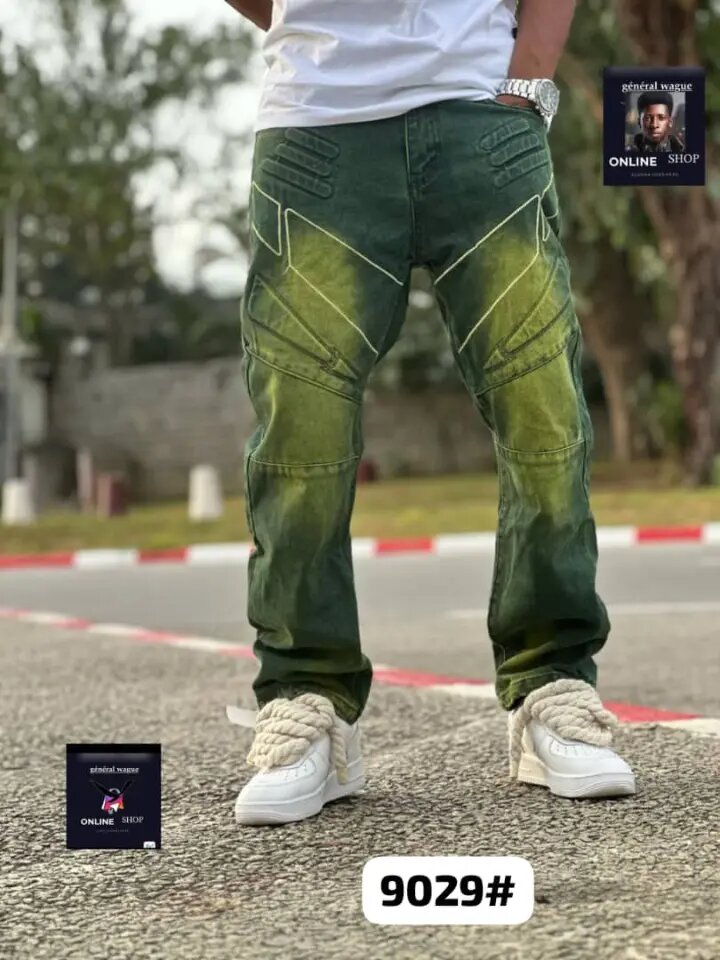 Découvrez ce jean vert décontracté pour homme. Doté d'un style unique avec détails modernes, il est parfait pour un look tendance et confortable. Idéal pour une sortie entre amis ou une tenue casual, ce pantalon se marie parfaitement avec des baskets et un t-shirt.