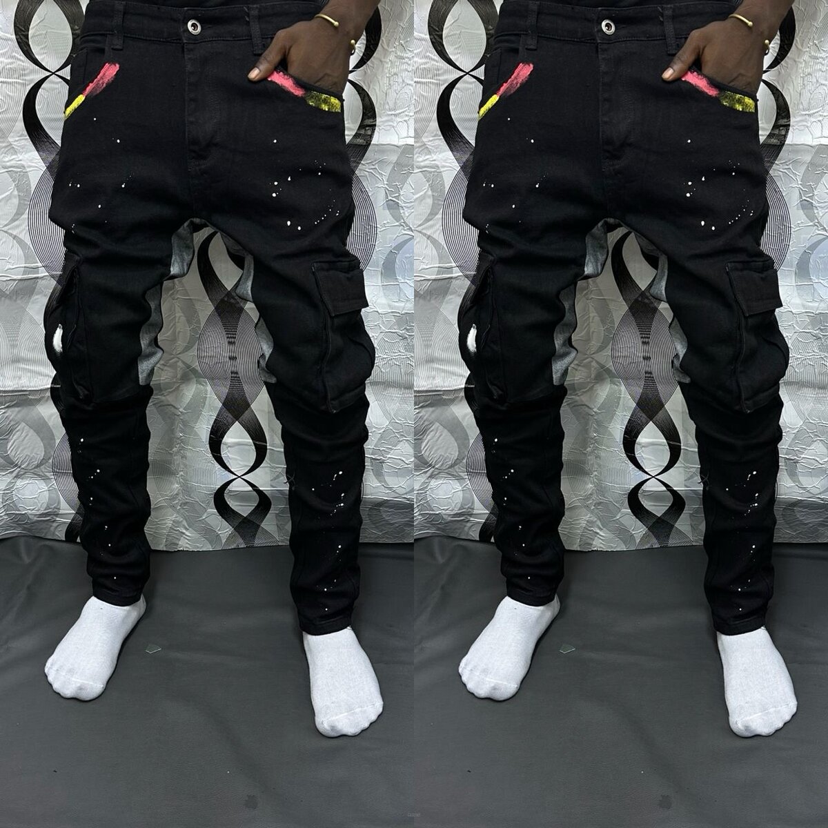 Découvrez ces jeans artistiques pour homme, parfaits pour un look moderne et tendance. Fabriqués en denim de qualité, ils sont ornés de motifs uniques qui attirent le regard. Idéal pour les sorties urbaines ou les occasions spéciales, ce pantalon est conçu pour ceux qui n'ont pas peur de se démarquer. Confortable et stylé, c'est le choix parfait pour exprimer votre personnalité!