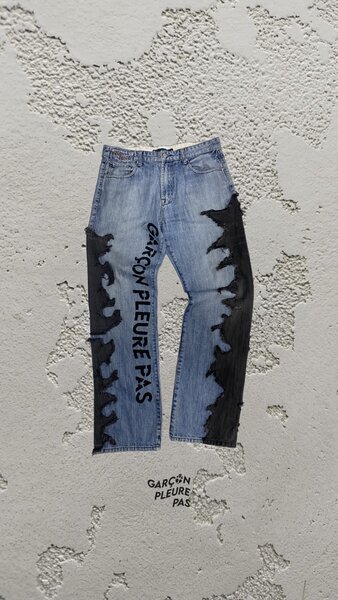 Exprimez votre individualité avec ce jean déchiré unique orné de motifs flammes flamboyants. Idéal pour ceux qui aiment un style audacieux et décontracté. Fabriqué en denim de haute qualité pour un confort durable. Parfait pour les sorties en ville ou un style casual tendance.