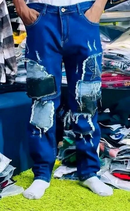 Jeans déchirés pour homme, bleu foncé, avec des détails déchirés. Confortables et tendance, parfaits pour un look casual.