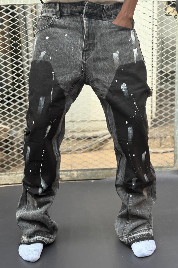 Jeans déchirés pour homme, style streetwear, couleur gris foncé, parfait pour un look décontracté et tendance.