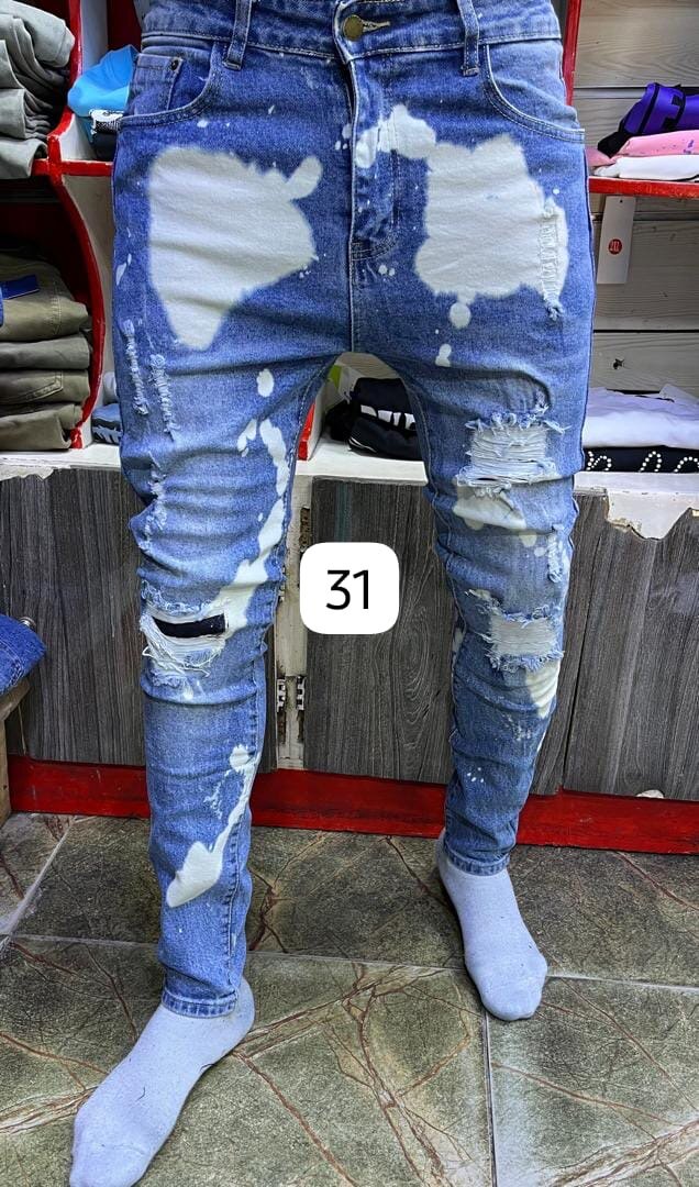 Jeans déchirés pour homme. Confortables et élégants, ils ajoutent une touche de style à votre tenue. Taille 31.