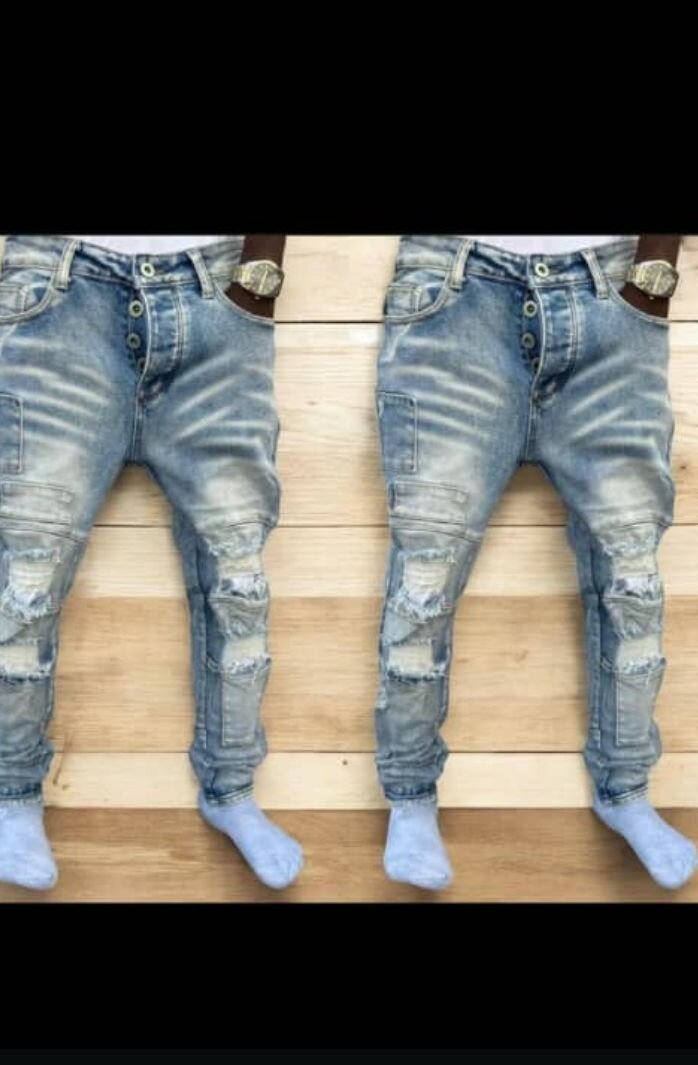 Jeans déchirés pour homme, style streetwear. Confortables et robustes, ils sont parfaits pour un look décontracté. Fabriqués en denim de qualité.