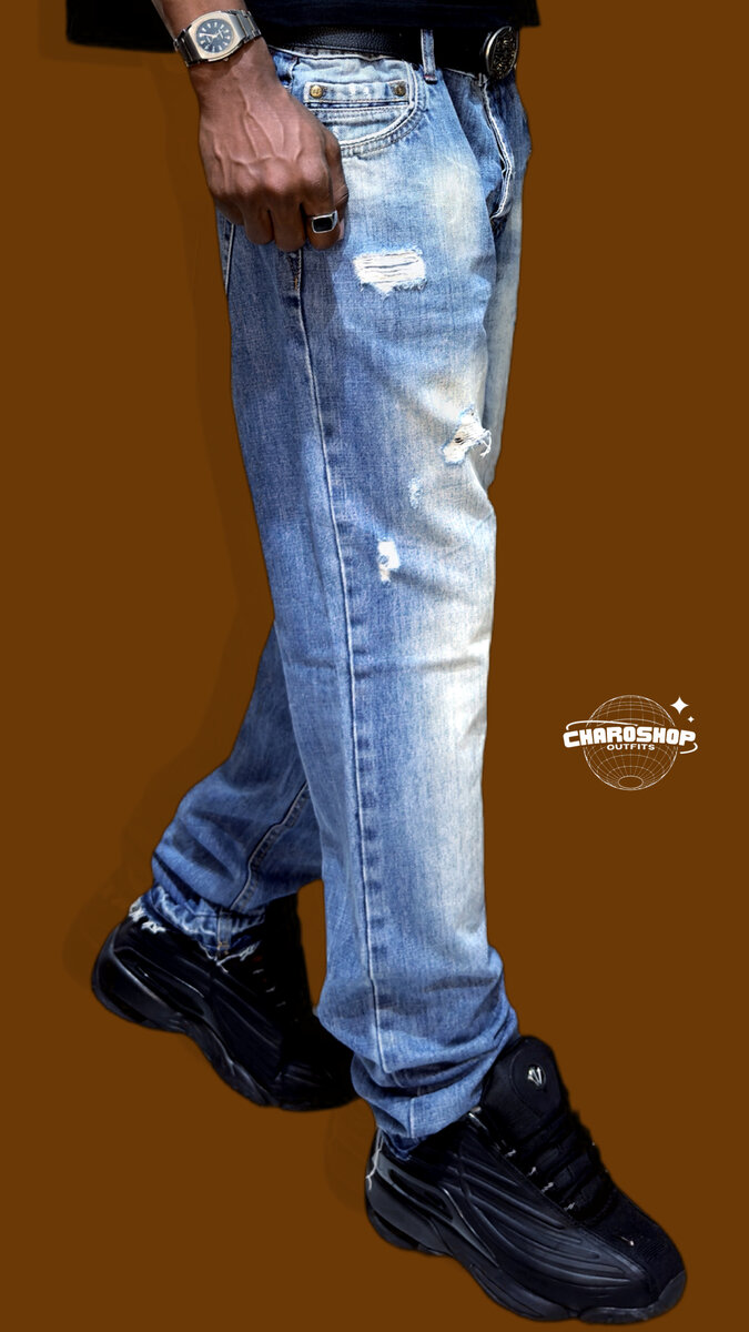 Optez pour un look tendance avec ces jeans décontractés en denim bleu. Parfaits pour un style urbain, ils allient confort et modernité grâce à leur design avec effet déchiré. Idéal pour vos sorties quotidiennes, associez-les avec vos sneakers préférées pour un ensemble harmonieux. Ne ratez pas cette pièce incontournable de votre garde-robe!