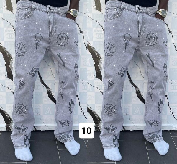 Jeans décontractés pour homme avec motifs originaux. Idéal pour un look tendance et confortable. Fabriqué avec des matériaux de qualité pour un style urbain.
