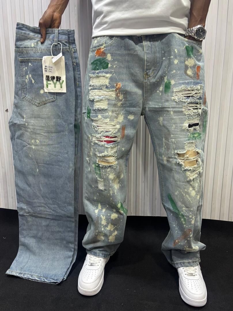 Découvrez notre collection de jeans décontractés pour hommes, alliant style urbain et confort. Avec des déchirures tendance et des imprimés artistiques, ces jeans sont parfaits pour affirmer votre personnalité. Idéal pour un look casual avec un t-shirt et des baskets.