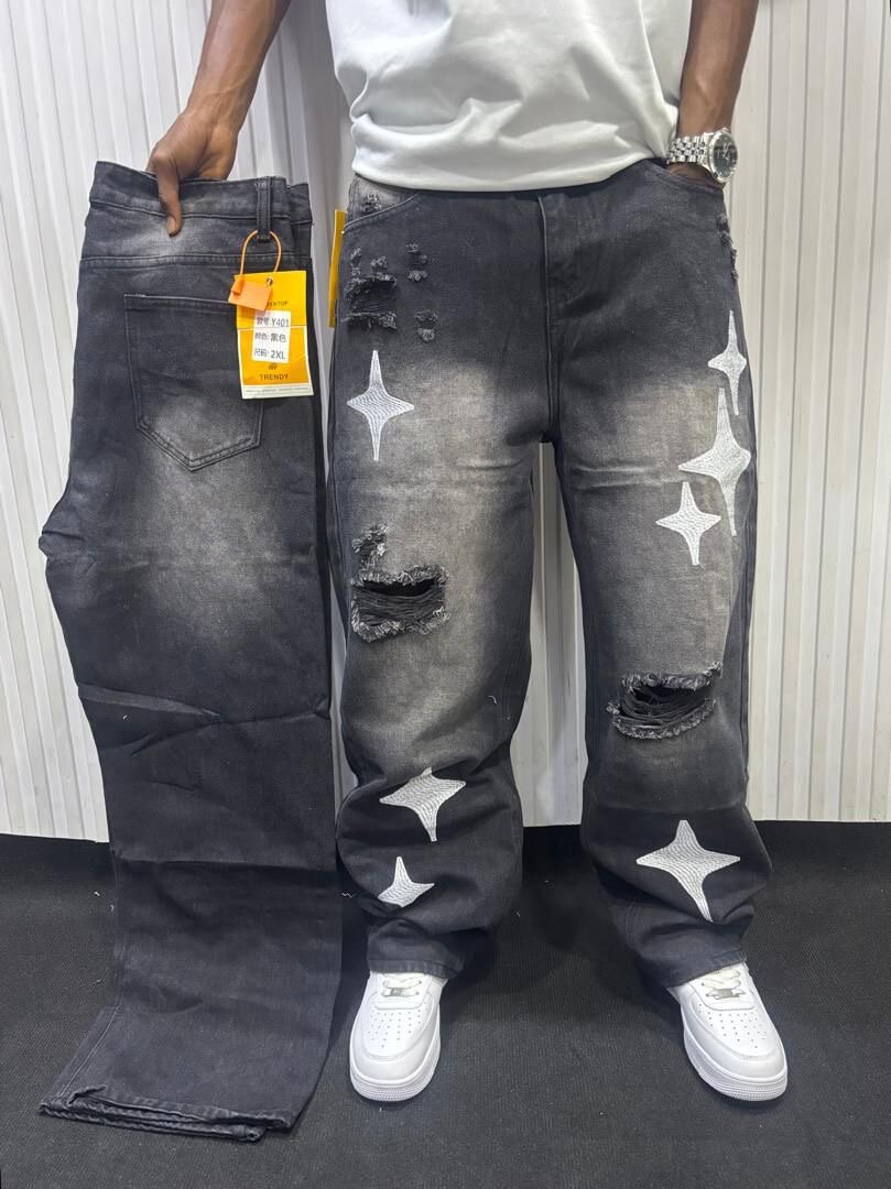 Découvrez ces jeans décontractés en denim avec des motifs uniques et un style usé. Parfaits pour une touche urbaine chic.