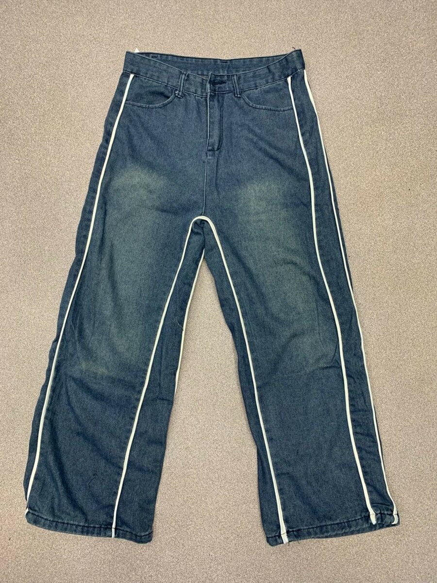 Découvrez nos jeans en denim unisexe, alliant style et confort avec des bandes latérales tendance. Idéal pour un look moderne et décontracté, parfait pour toute occasion décontractée. Confectionnés avec une coupe ample pour un mouvement facile.