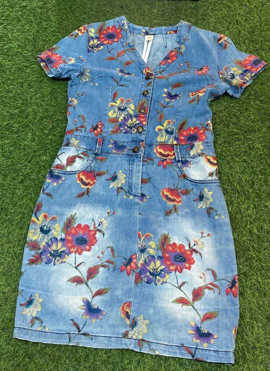 Thrift jeans flowers dress. Size : S