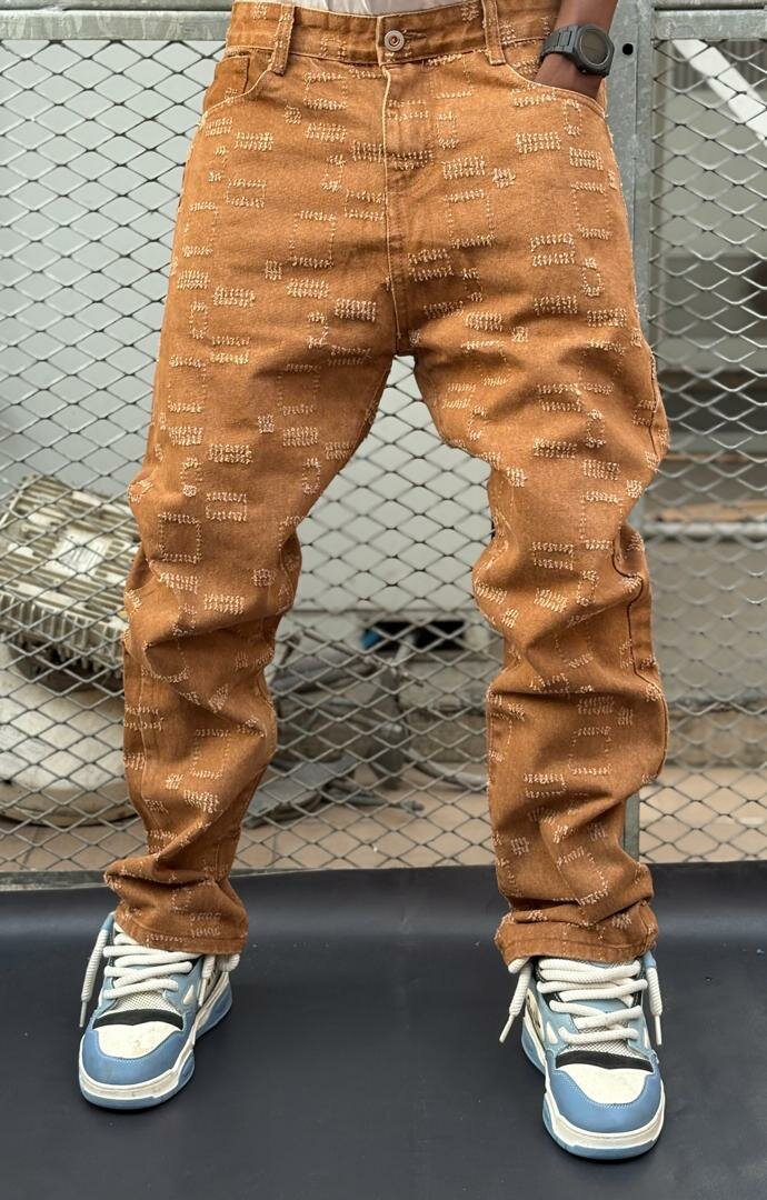 Découvrez ces jeans en denim avec un motif minimaliste unique. Confortables et tendance, ils sont parfaits pour un look décontracté ou urbain. Parfaits pour le quotidien, ces jeans se marient facilement avec vos sneakers préférées. Fabriqués en coton de haute qualité pour un ajustement parfait toute la journée.