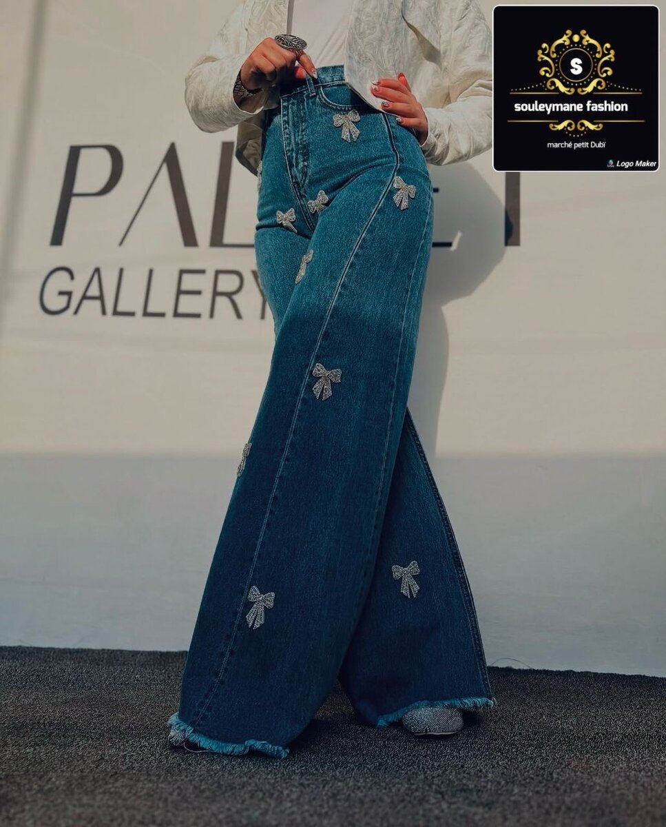 Découvrez ce jean femme évasé avec motifs papillons, idéal pour un look rétro et tendance. Confortable et stylé, il sublime toutes les silhouettes. Parfait pour toute occasion décontractée .