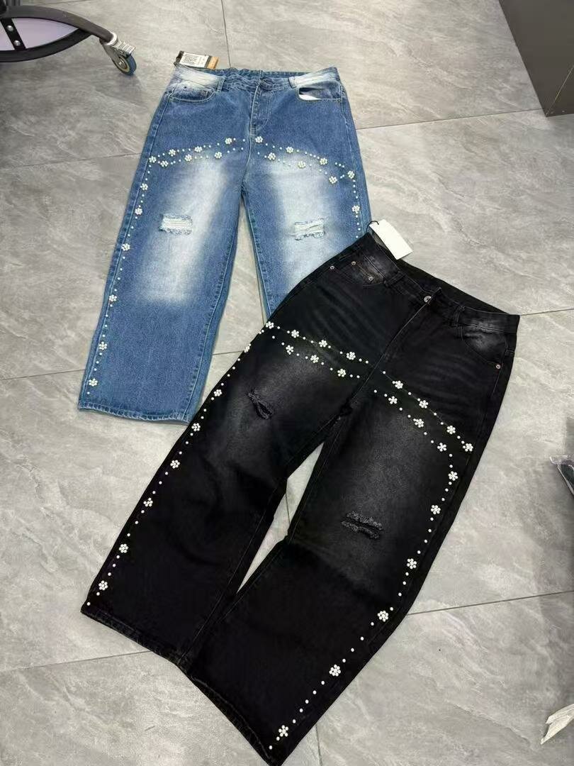 Découvrez ces jeans femme ornés de perles élégantes. Ils offrent un style chic et unique avec leur coupe ample et leurs détails déchirés et perlés. Idéaux pour des sorties décontractées ou des moments spéciaux, ces jeans se marient parfaitement avec des tops ajustés ou des chemises fluides. Faits de matériaux de qualité, ils assurent confort et durabilité. Choisissez ces jeans pour un look fashion et moderne!