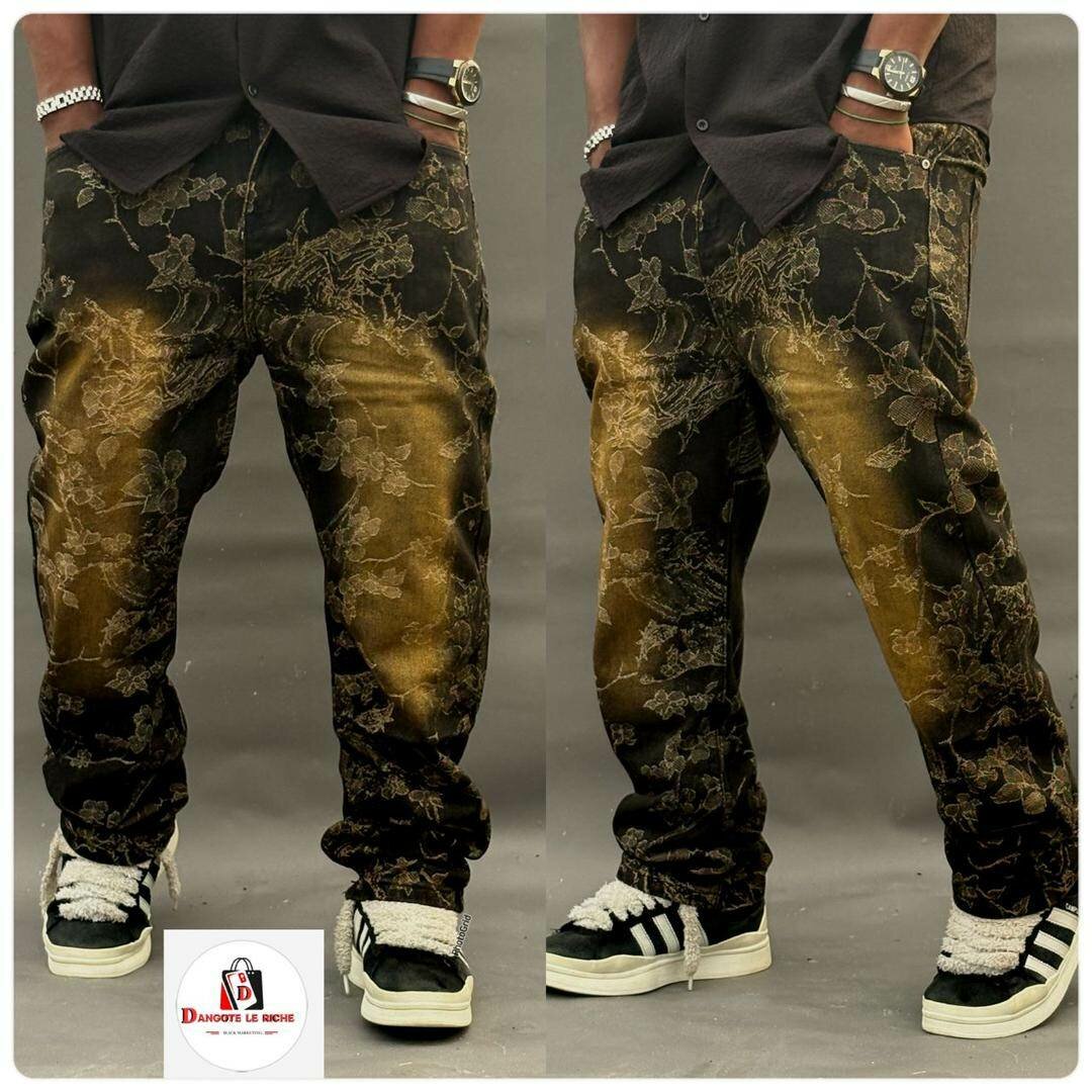 Modernisez votre garde-robe avec ce jeans pour homme au style unique. Orné d'un magnifique imprimé floral doré, il est parfait pour les sorties décontractées ou les occasions spéciales. Fabriqué avec des matériaux de haute qualité, il offre confort et durabilité. Associez-le à vos baskets préférées pour un look tendance et audacieux.
