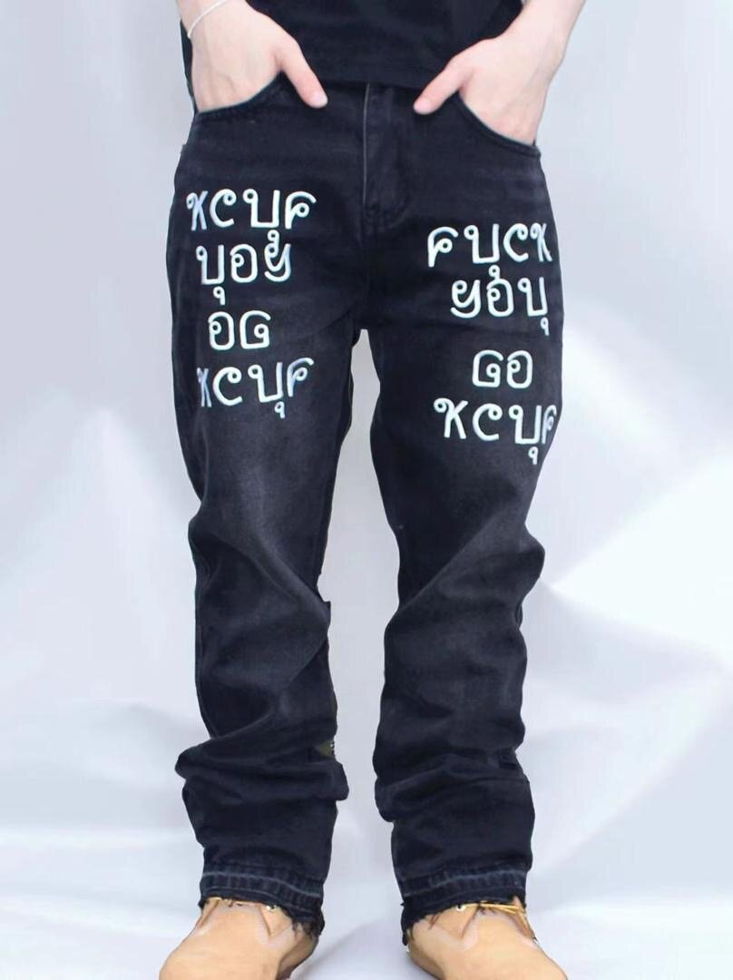 Découvrez ces jeans pour homme avec imprimé unique. Conçus pour ceux qui osent se démarquer, ces pantalons allient confort et style. Idéal pour un look urbain et branché.