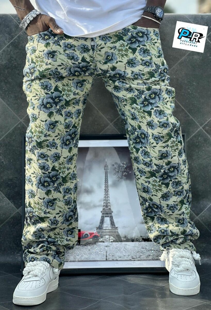 Découvrez ces jeans pour homme avec un motif floral audacieux, parfaits pour affirmer votre style. Fabriqués à partir d'un tissu confortable et durable, ils ajoutent une touche unique à votre garde-robe. Idéals pour une sortie décontractée ou une soirée tendance. Optez pour un look qui ne passera pas inaperçu.