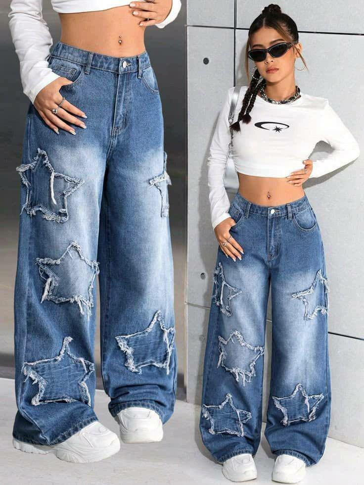 Découvrez ces jeans larges uniques avec des motifs audacieux. Idéals pour un look moderne et confortable lors de vos sorties décontractées ou pour un style urbain tendance. Parfaits avec des baskets et un t-shirt simple.