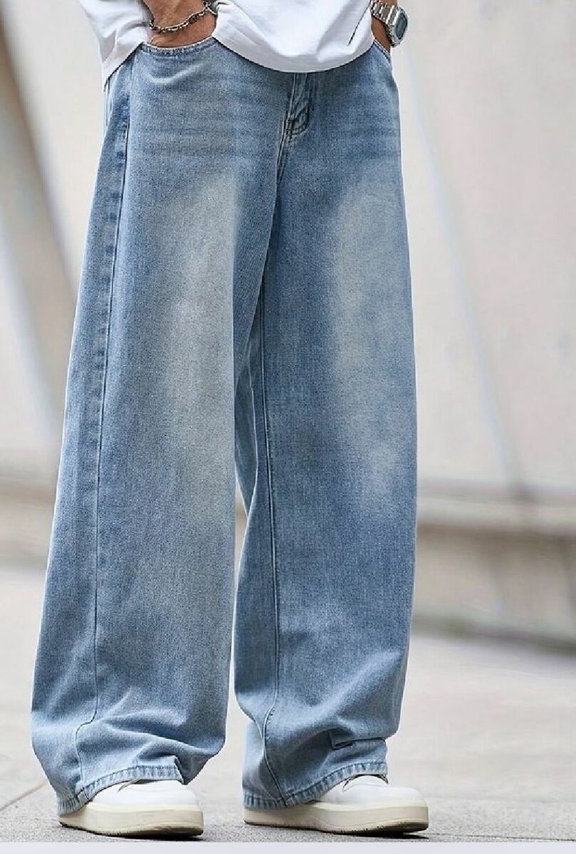 Ces jeans larges pour homme en denim bleu clair offrent un style décontracté et moderne. Confortables et élégants, ils sont parfaits pour une tenue quotidienne ou une sortie décontractée.