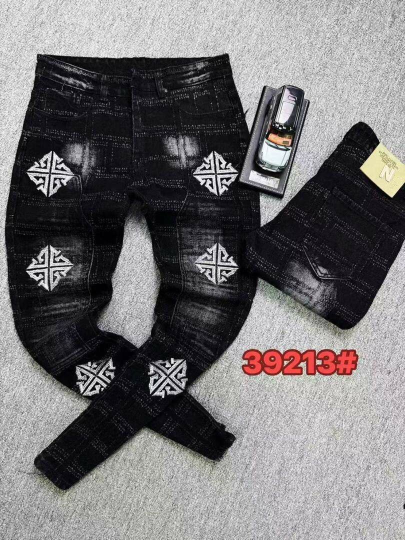 Optez pour un style audacieux avec ces jeans noirs ornés de motifs uniques. Parfait pour une tenue décontractée ou une sortie stylée. Coupe ajustée et confortable. Idéal pour mettre en valeur votre personnalité distinctive.