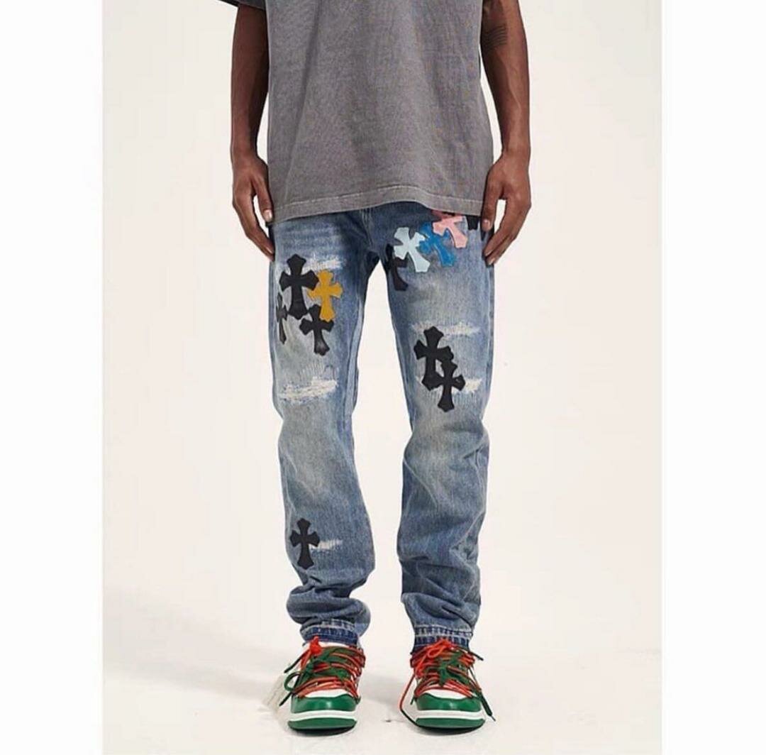 Découvrez un style unique avec ces jeans, ornés de broderies audacieuses. Confortables et stylés, ils offrent une allure décontractée parfaite pour toutes occasions. Idéal pour ceux qui veulent se démarquer avec une touche vintage moderne.