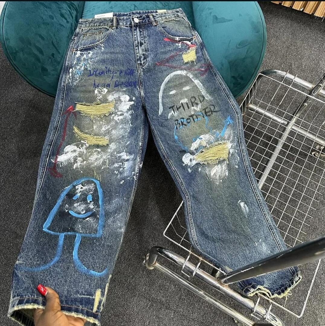 Ces jeans artistiques sont parfaits pour exprimer votre style unique. Avec des motifs peints à la main, ils ajoutent une touche d'originalité à toute tenue. Fabriqués en denim résistant, ils sont confortables pour un usage quotidien. Idéal pour les amateurs de mode urbaine et ceux qui cherchent à se démarquer.
