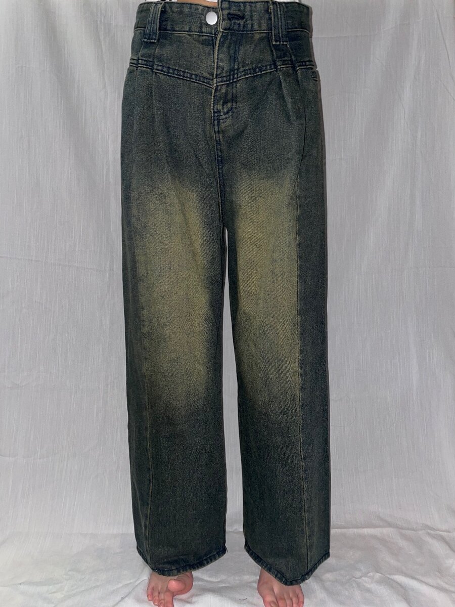 Широкие джинсы в классическом стиле, с высокой посадкой. Материал плотный и качественный, окрашивание с эффектом винтажной потертости. Универсальный фасон подойдет для повседневного образа. Размер уточняйте. Состояние отличное, без дефектов.