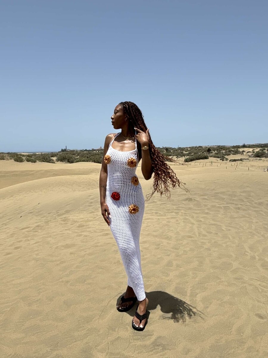 Adoptez un look estival élégant avec cette robe maxi en crochet. Idéale pour la plage ou une promenade ensoleillée, elle se distingue par ses détails floraux colorés. Confortable et stylée, c'est un choix parfait pour les journées chaudes. Faites de chaque sortie une déclaration de mode!