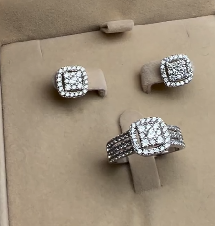 Роскошный комплект из родиронного серебра 925 пробы✨ Вставки цирконий💎 Размер кольца-18