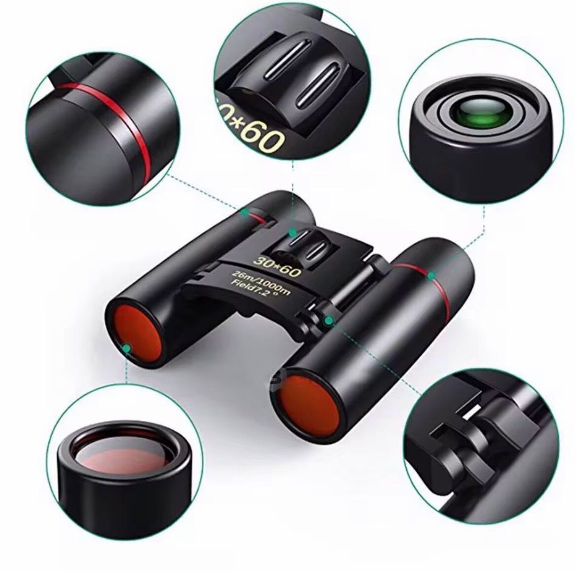 Explorez le monde avec ces jumelles compactes 30x60. Idéales pour la randonnée, les événements sportifs et l'observation de la nature. Léger et facile à transporter avec une portée de 126m/1000m et angle de vue de 7.2°. Inclut un étui de transport pratique. Parfait pour les amateurs de plein air!