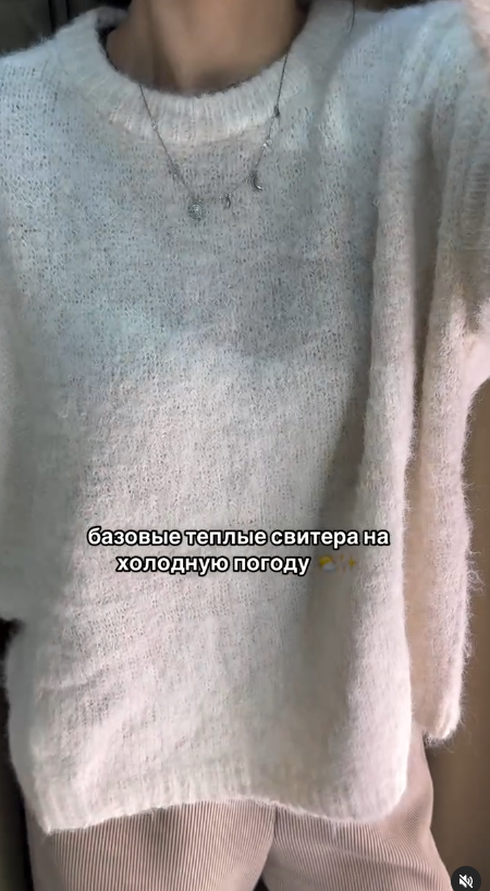 Свитер бежевого цвета с коротким рукавом, горловина украшена стразами