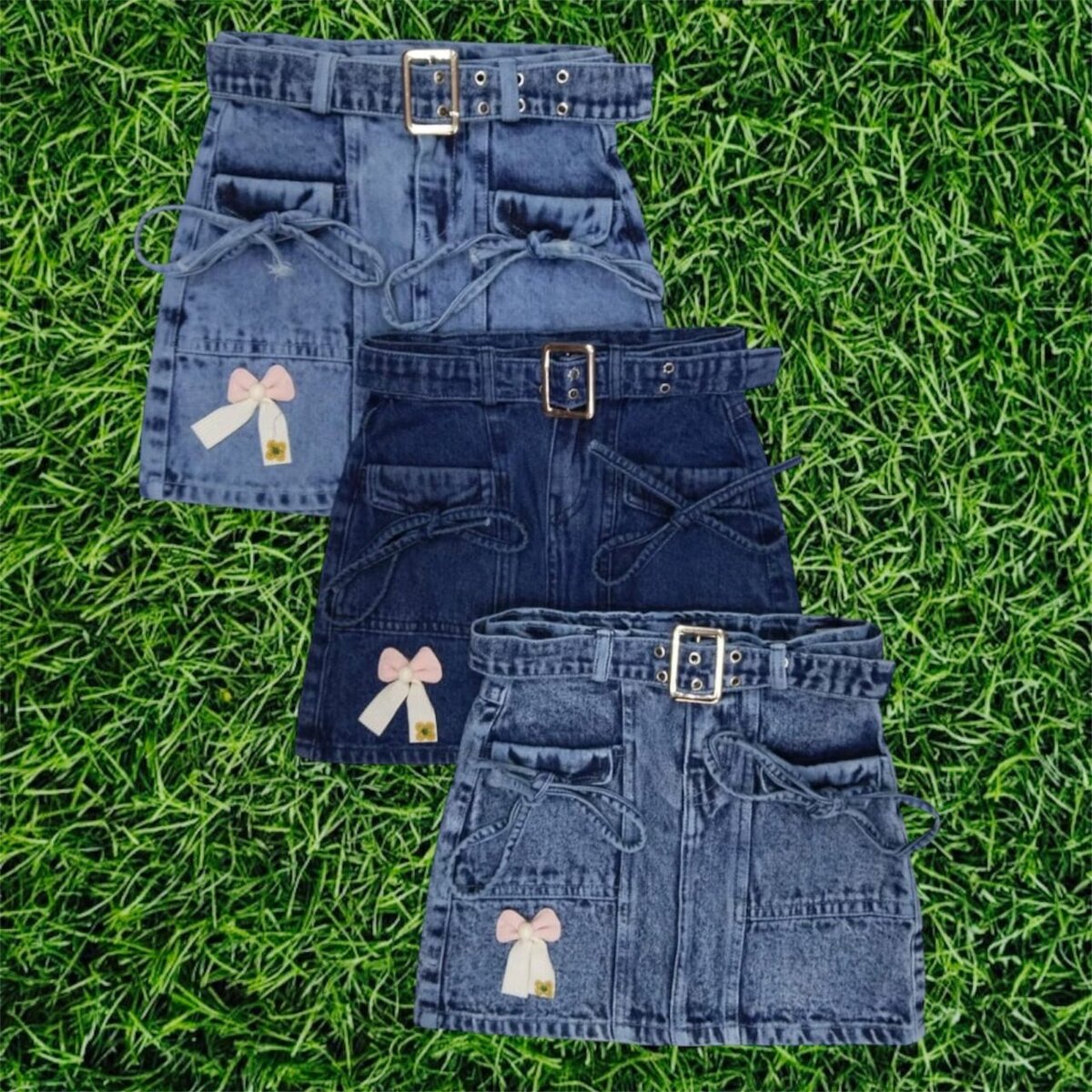 Jupe enfant en denim avec poches cargo et ceinture élégante. Idéale pour un look tendance et confortable. Disponible en plusieurs teintes.