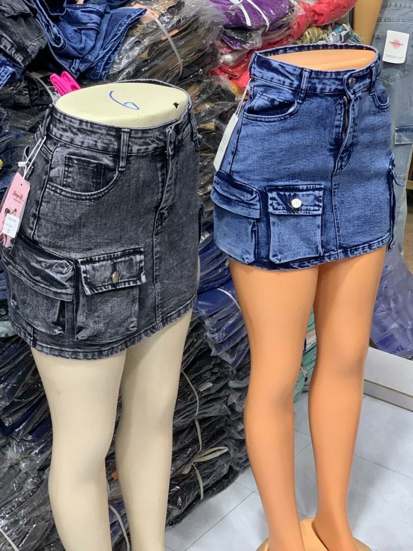 Jupe courte cargo en jean bleu BRASSLA
