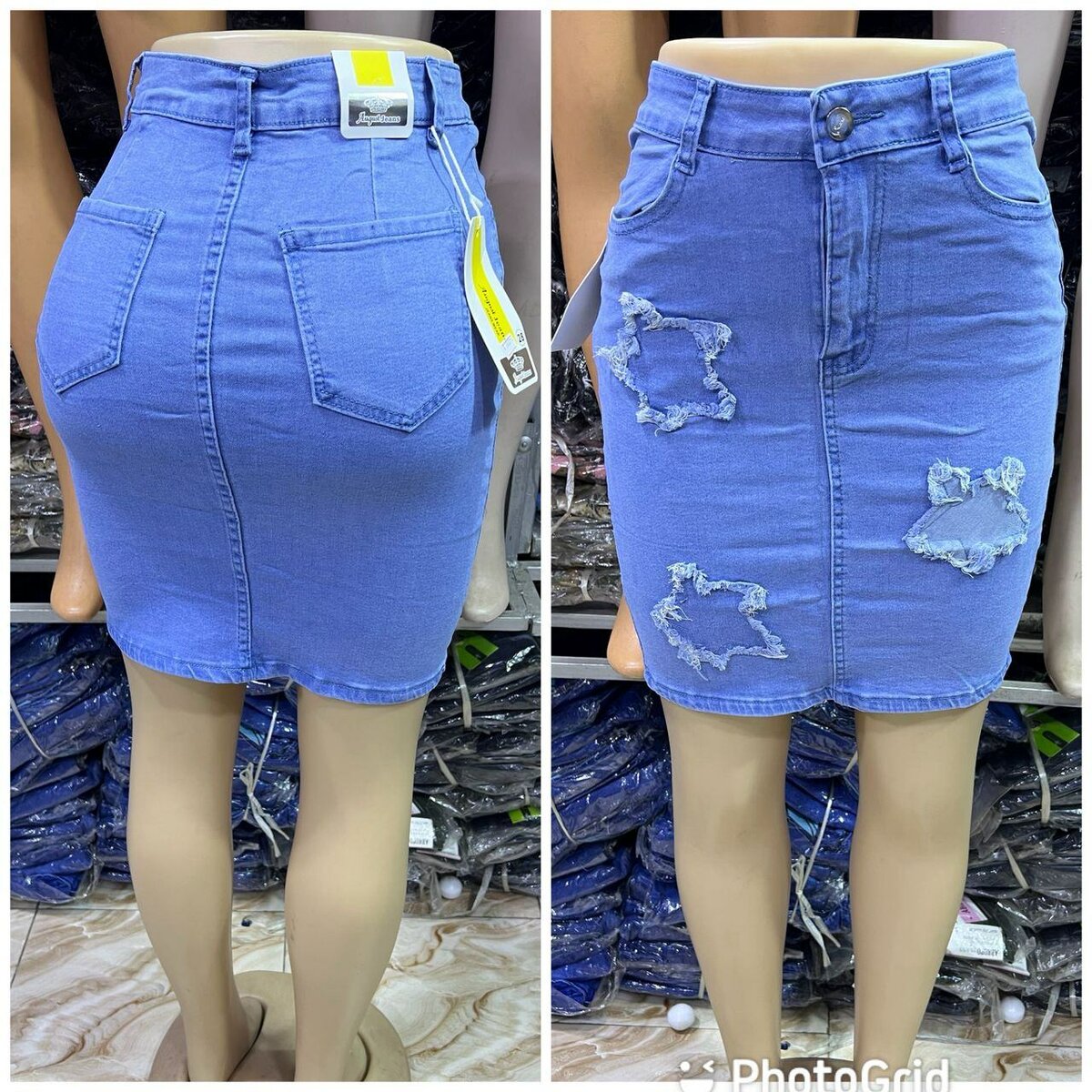 Jupe en jean bleue avec détails déchirés et poches arrière. Confortable et stylée, parfaite pour un look décontracté ou chic.
