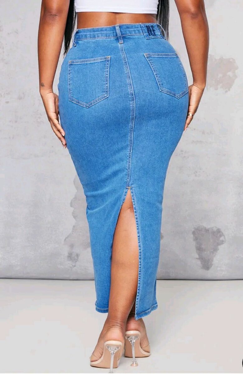 Adoptez un look intemporel avec cette jupe en jean longue fendue à l'arrière. Parfaite pour une silhouette élégante et moderne. Idéale pour des sorties décontractées ou des soirées.