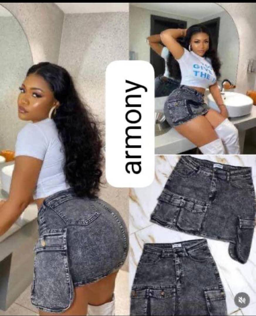 Jupe en jean noire avec poches, parfaite pour un look fashion et audacieux. S'adapte à toutes les occasions décontractées et chic. Confortable et stylée, elle met en valeur votre silhouette.