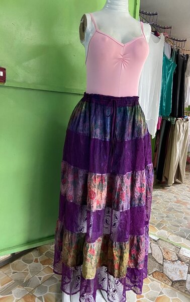 Découvrez notre jupe longue bohème avec des motifs vibrants en tons pastel. Parfaite pour une journée décontractée ou une soirée estivale, elle offre confort et style. Taille ajustable pour un ajustement parfait. Idéale pour un look élégant et décontracté.