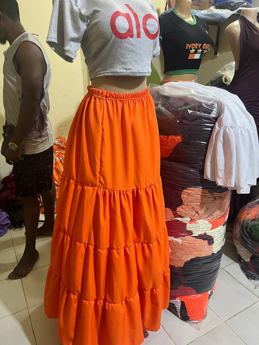 Élégante jupe longue bohème pour un style tendance. Fait de tissu léger avec des volants pour une touche chic. Idéale pour les journées d'été, soirées décontractées ou festivals. Confort garantie avec taille élastique. Ajoutez une touche de couleur vive à votre garde-robe !