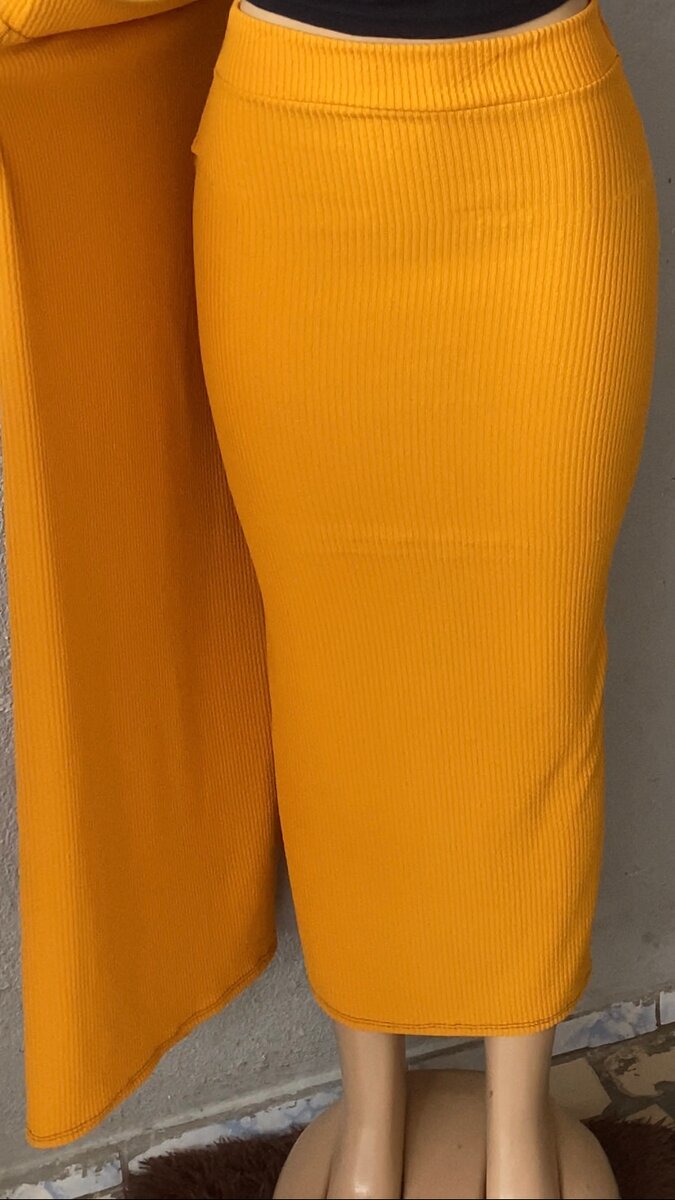 Élégante jupe longue côtelée jaune, parfaite pour un look moderne et stylé. Fabriquée en tissu de qualité, elle épouse délicatement les courbes pour un confort optimal. Idéale pour des tenues décontractées ou professionnelles. Associez-la à un haut ajusté pour un ensemble chic et féminin. Taille ajustée pour un maintien parfait.