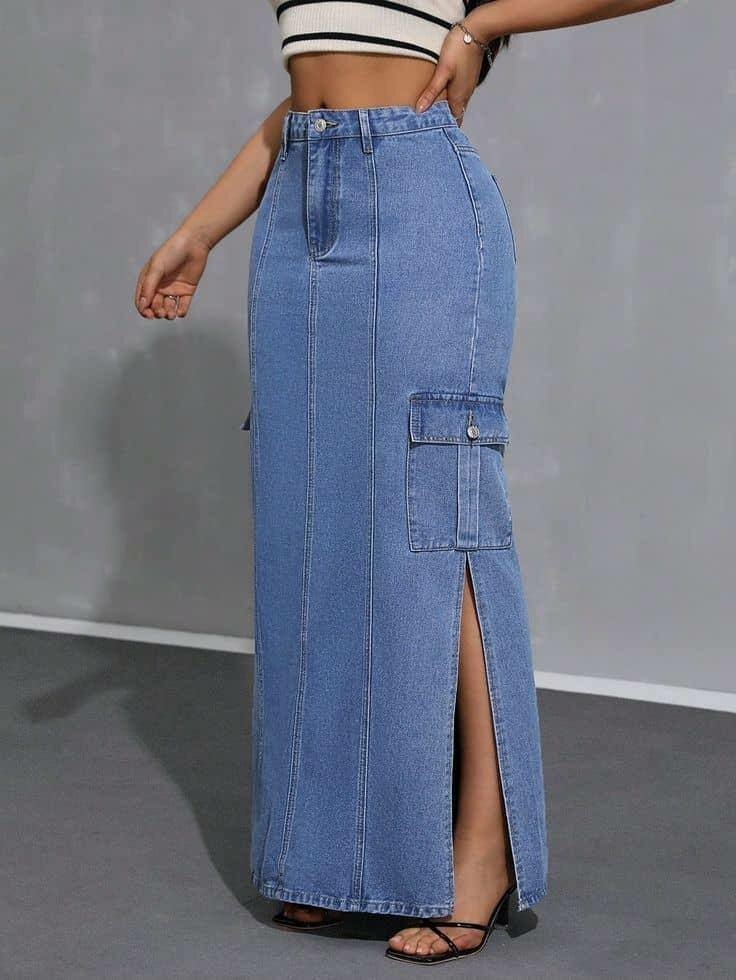Adoptez un style décontracté et chic avec cette jupe longue en denim. Confortable et polyvalente, elle est parfaite pour un look quotidien ou une sortie entre amis. Ses poches fonctionnelles ajoutent une touche pratique.