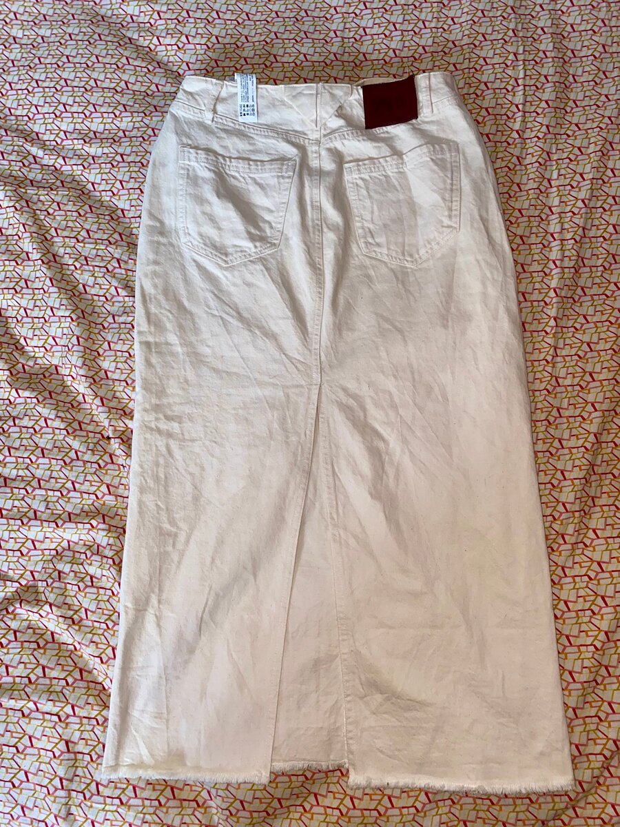 Découvrez cette élégante jupe longue en jean parfaite pour un look décontracté chic. Taille haute et coupe droite, elle s'associe facilement avec n'importe quel haut. Idéale pour le bureau ou une sortie en ville. Matière douce et confortable, cette jupe est un incontournable de votre garde-robe!