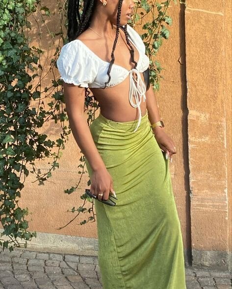 Découvrez notre jupe longue en velours vert, idéale pour un look chic et décontracté. Parfaite pour les journées ensoleillées ou les soirées estivales, elle offre une silhouette élégante et fluide. Associez-la avec un haut simple pour un style tendance et raffiné.
