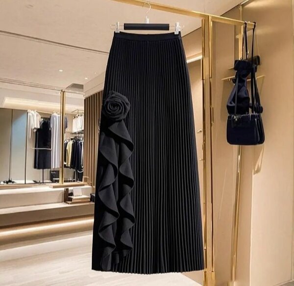 Découvrez cette jupe longue noire avec détails perles, parfaite pour un look chic et sophistiqué. Idéale pour toutes occasions, elle s'associe facilement à vos tenues préférées pour une touche d'élégance unique.