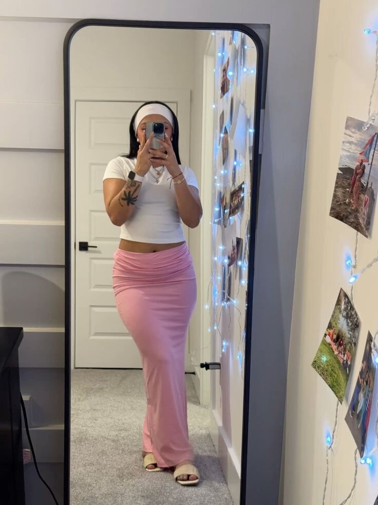 Portez cette jupe longue rose pour un look estival chic. Conçue pour offrir confort et style, elle est parfaite pour les journées décontractées ou les sorties en ville. Associez-la avec un top ajusté pour une allure sophistiquée.