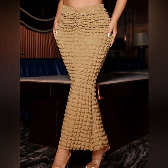 Découvrez notre jupe longue texturée, idéale pour un look élégant et original. Conçue pour s'adapter à toutes les occasions, elle met en valeur votre silhouette avec ses détails structurés uniques. Parfaite pour les soirées ou les journées casual, cette jupe est un must-have pour votre garde-robe.