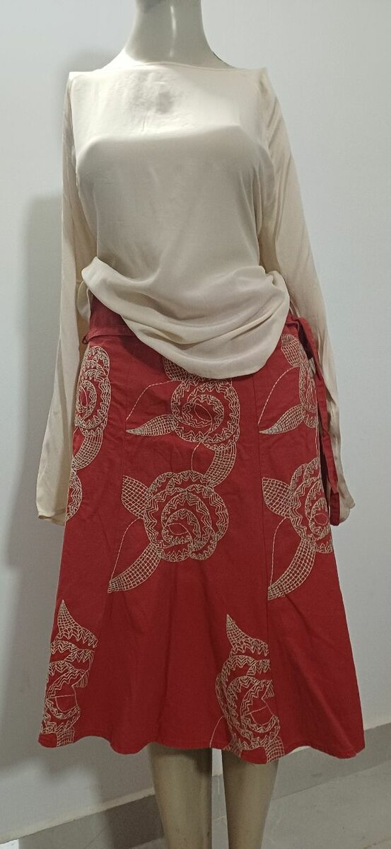 Élégante jupe mi-longue rouge avec motifs floraux, parfaite pour un look chic et moderne. Conçue pour les femmes qui apprécient le style classique avec une touche de modernité. Idéale pour les occasions spéciales ou un usage quotidien. Associez-la avec un haut uni pour un look harmonieux. Matière de qualité garantissant confort et style.