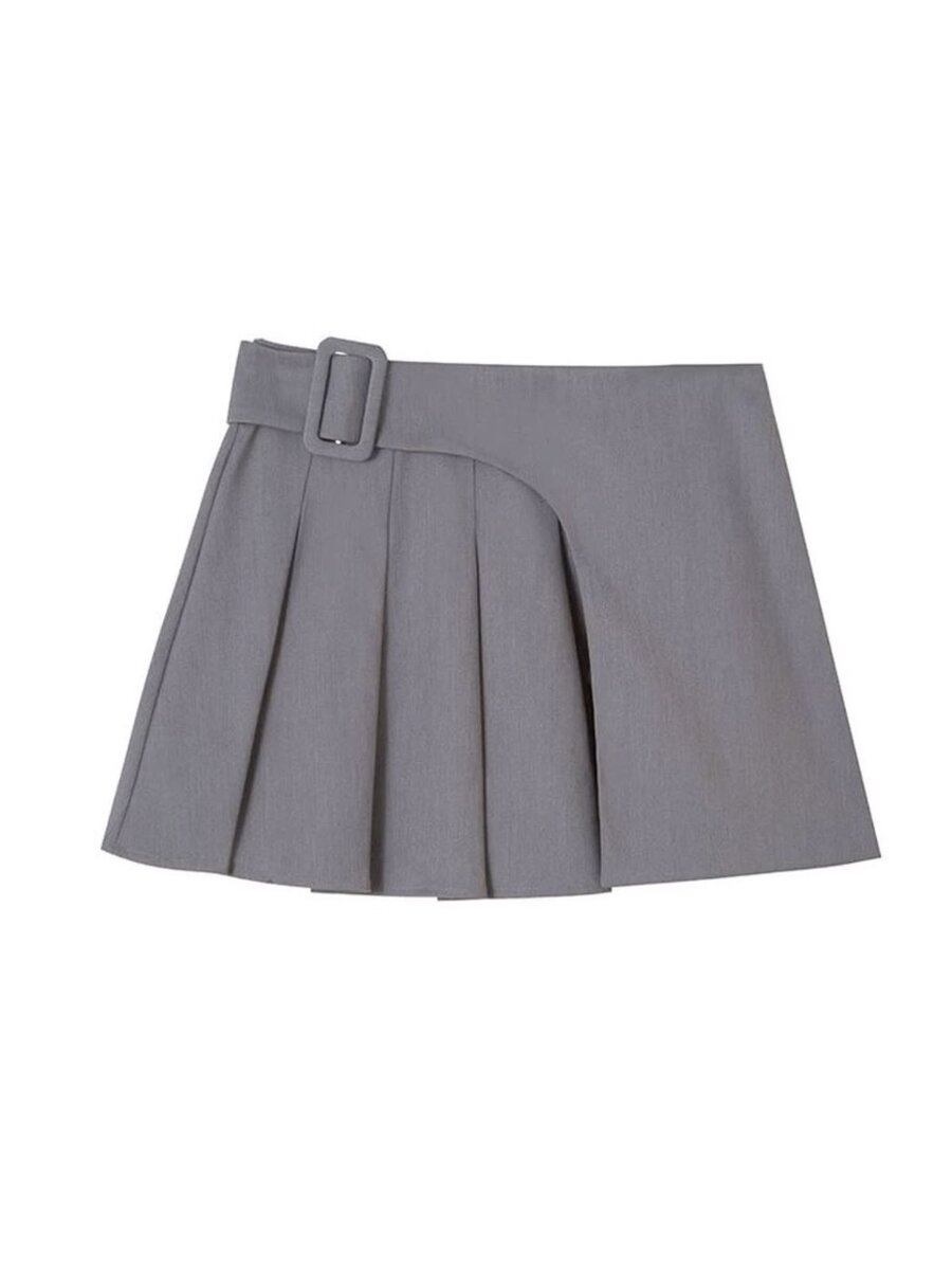Cette jupe plissée grise avec une ceinture à boucle est idéale pour un look chic et moderne. Elle s'adapte à tous les styles, que ce soit pour le bureau ou une sortie décontractée. Sa conception en tissu de qualité garantit confort et durabilité. Un indispensable pour votre garde-robe!