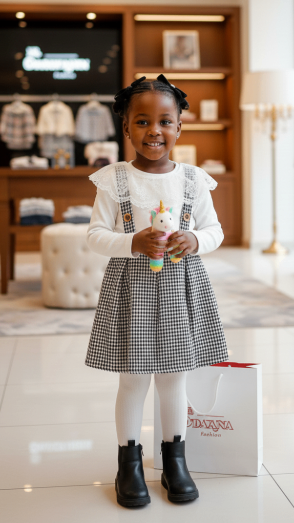 Cette adorable jupette salopette à carreaux est parfaite pour les petites filles élégantes. Fabriqué avec des matériaux doux, elle offre confort et style. Idéale pour des occasions spéciales ou pour le quotidien. Associez-la avec des bottines pour un look complet.