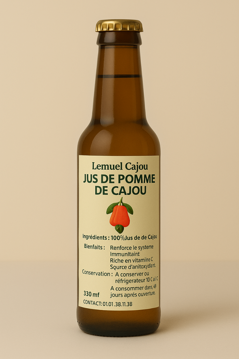 Dégustez un jus de pomme de cajou naturel à 100%, enrichi en vitamine C pour booster votre système immunitaire. Parfait pour une consommation rafraîchissante à tout moment de la journée. Conservez au réfrigérateur pour une fraîcheur optimale.