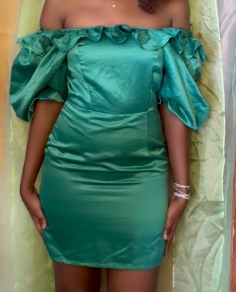 Kendal Basil Satin Draping Off Shoulder Corset Dress